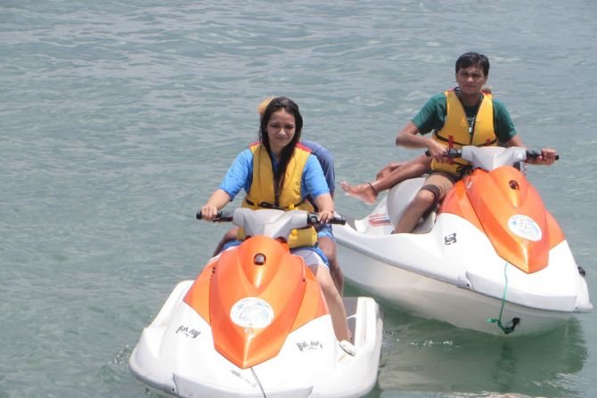 Di sisi lain, Anda juga dapat menikmati keindahan Tanjung Benoa dari langit. Apa yang harus Anda lakukan adalah mengambil paket parasailing petualangan kami. Dengan mengambil paket menarik ini, Anda akan diterbangkan seperti burung sambil menjelajahi keindahan laut dan sekitarnya di atas langit. Dalam parasailing, Anda akan menggunakan parasut dan Anda akan menarik dengan speedboat. Sekali lagi, Anda akan ditemani oleh instruktur. Anda akan memiliki briefing singkat sebelum terbang bersama dengan standar keamanan. Anda akan terbang sekitar 5 menit per sesi. Ini akan menjadi sangat menarik bersama dengan paket parasailing kami. Apakah Anda ingin merasakan sensasi terbang dekat dengan air dalam kecepatan motor tinggi? Hanya mencoba paket banana boat kami. Dalam paket ini, Anda dan teman Anda hanya duduk di perahu. Perahu tampak seperti pisang. Kemudian, speed boat akan mendorong perahu pisang dalam kecepatan tinggi. Sensasi ini begitu menyenangkan. Anda akan merasakan gelombang dari pantai Tanjung Benoa. Hal ini dapat digunakan untuk 4 orang dan 1 instruktur. instruktur kami dan tim akan membawa Anda merasa menyenangkan ini selama sekitar 15 menit. Hal ini juga kesempatan Anda untuk mencoba paket baru kami yang dikenal sebagai paket jet sky. Dengan mencoba paket langit jet Anda akan terbang seperti superhero favorit Anda, Iron Man. Air dari jet akan mendorong Anda up. Keseimbangan adalah keterampilan penting dan akan dipandu oleh instruktur kami. Anda bisa merasakan sensasi ekstrim ini selama sekitar 15 menit di harga yang terjangkau. Jika tidak, Anda juga dapat mengambil sea walker paket kami. Dalam paket ini, Anda dapat menikmati keindahan bawah air di Tanjung Benoa dengan menggunakan helm khusus. Tampaknya Anda berjalan di sekitar air karena kepala Anda kering dan Anda bisa bernapas seperti cara biasa di dalam helm. Untuk menikmati sea walker, Anda harus menghabiskan sekitar 30 menit. Bagi mereka yang suka kecepatan, jadi jangan lewatkan untuk mencoba jetski dan menjelajahi keindahan dan gelombang Tanjung Benoa. Cukup gunakan Anda 15 menit untuk mencoba kecepatan jetski.