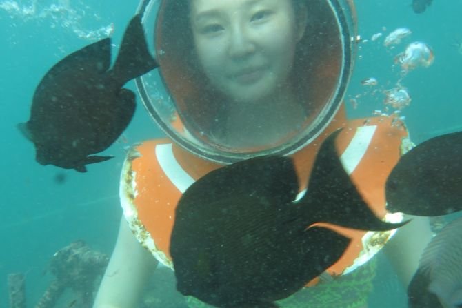 Perjalananbawahlaut sekitar 5 meter kedalaman tanpa berenangataupun menyelam. Inibenar- benarberjalandibawah laut.super fun